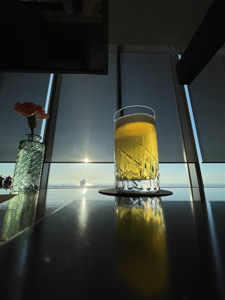 夕日にビール。