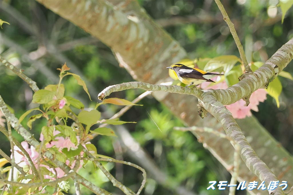 微妙な桜絡みなキビタキ