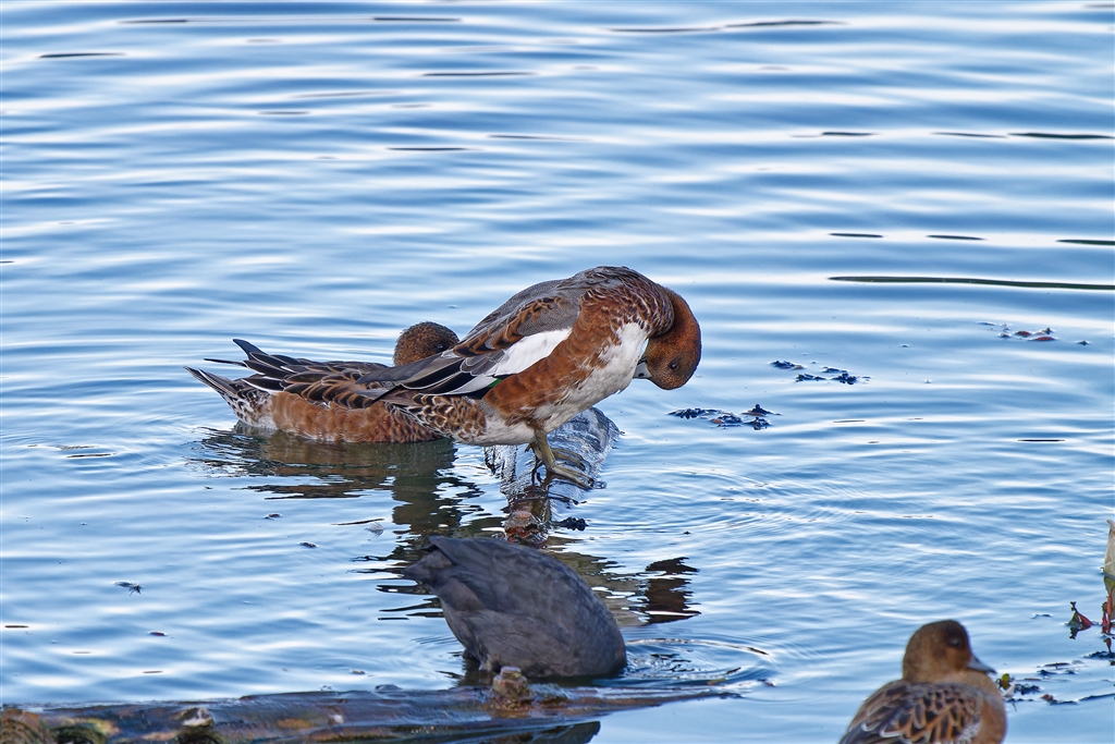 ヒドリガモ ♂、奥は♀