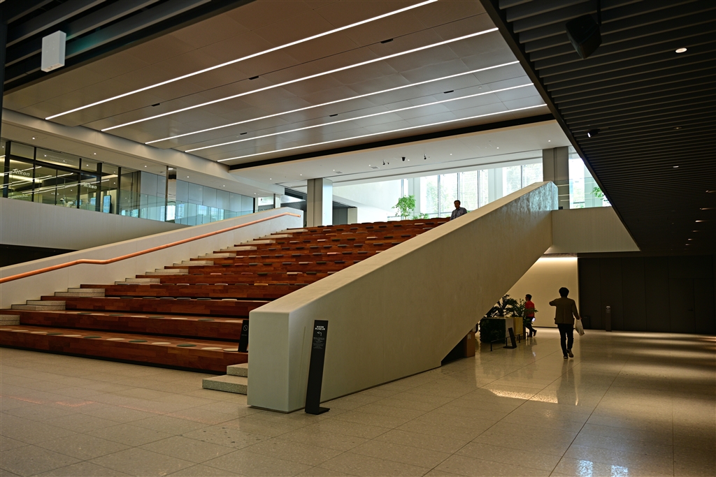 イベントホール 上が社員のホール 階段左奥にニコンミュージアムの入り口