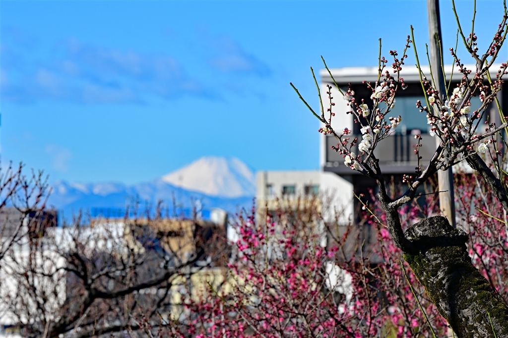 公園の中からも望めます 梅が咲くと梅越しに富士山を撮れます
