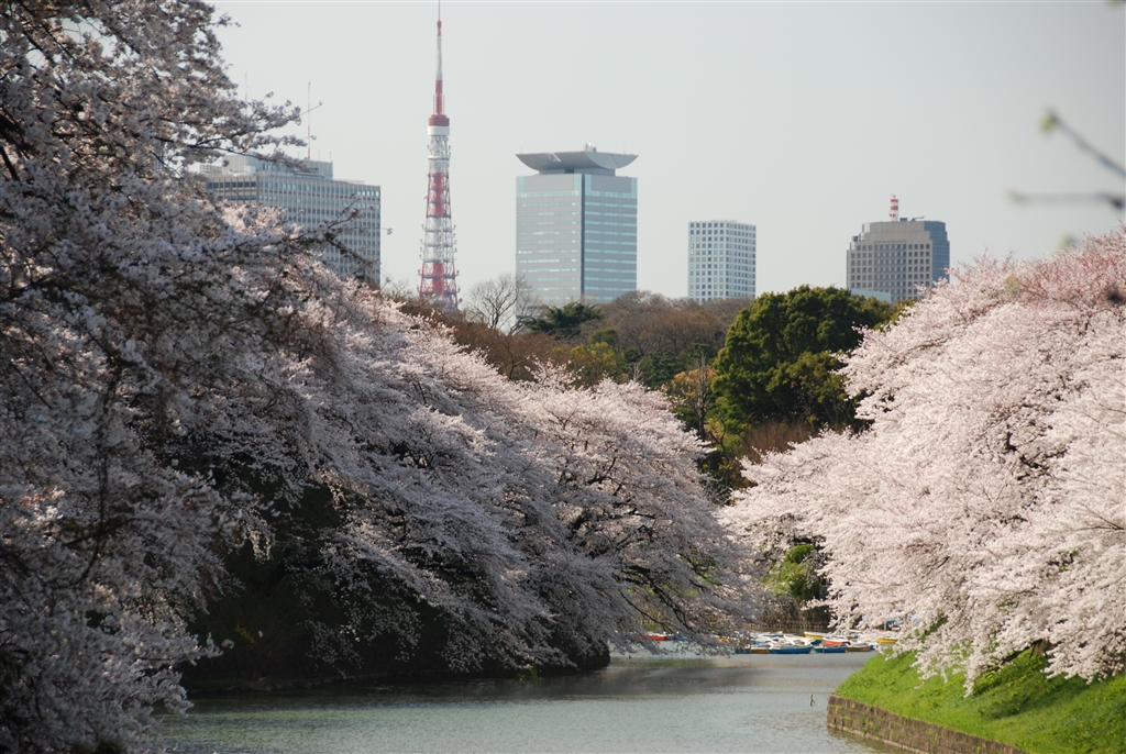 D80で 千鳥ヶ淵 桜も元気で東京タワーが桜越に綺麗に見えています