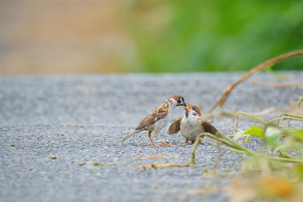 スズメの親子 幼鳥も育ってきました