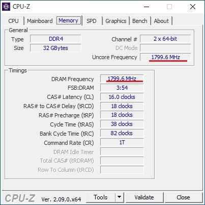 CPU-Z メモリー1:1モードの表示