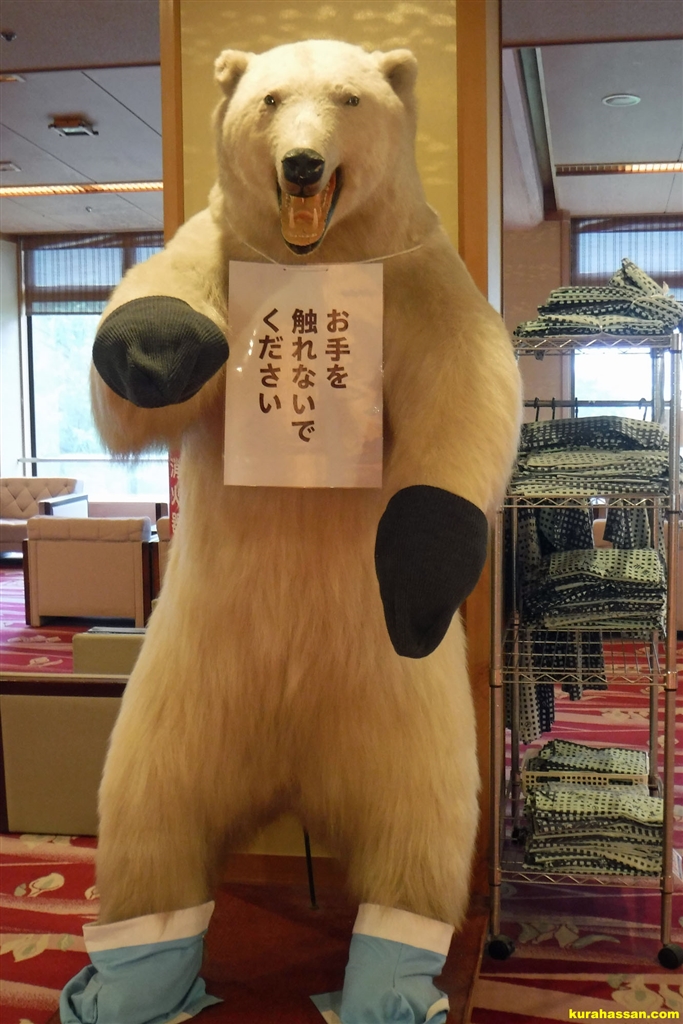 お世話になった北魚の旅館で睨みを効かすシロクマさん。