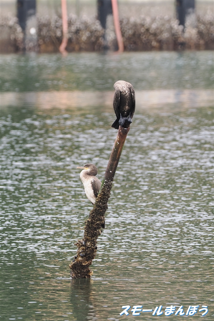 カワウが止まっていたのですが・・・1羽が顔が見えない(T-T)