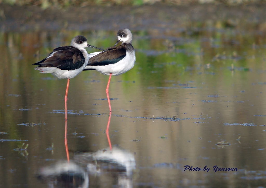 眠そうなセイタカシギ2羽