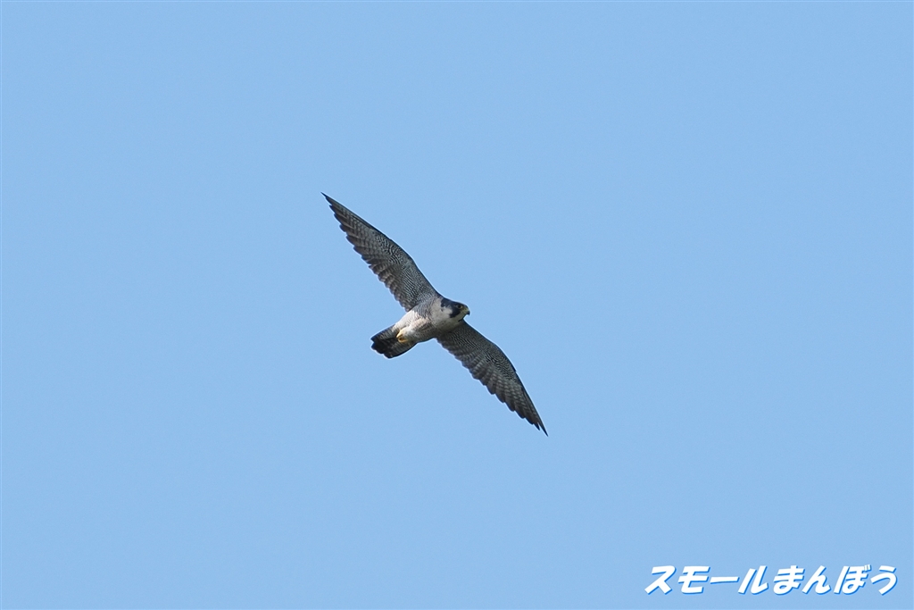 テリトリー内を巡回飛行中のハヤブサ成鳥