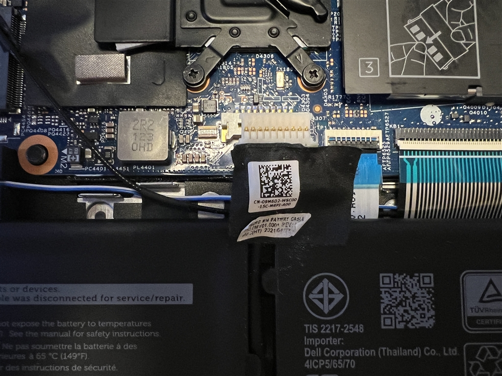 バッテリーパックのバッテリーケーブルをシステムボードのコネクタから外しました