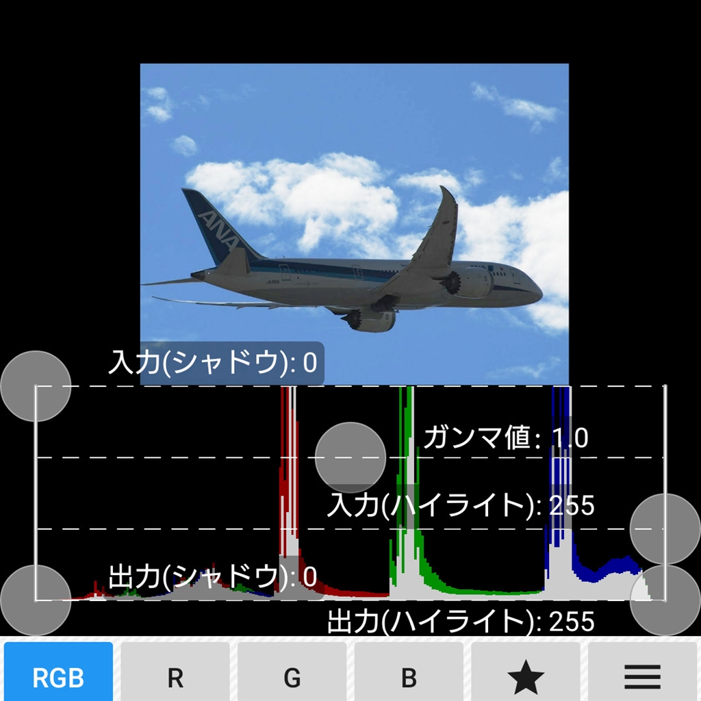 トーンカーブ(仮)補正後のヒストグラム