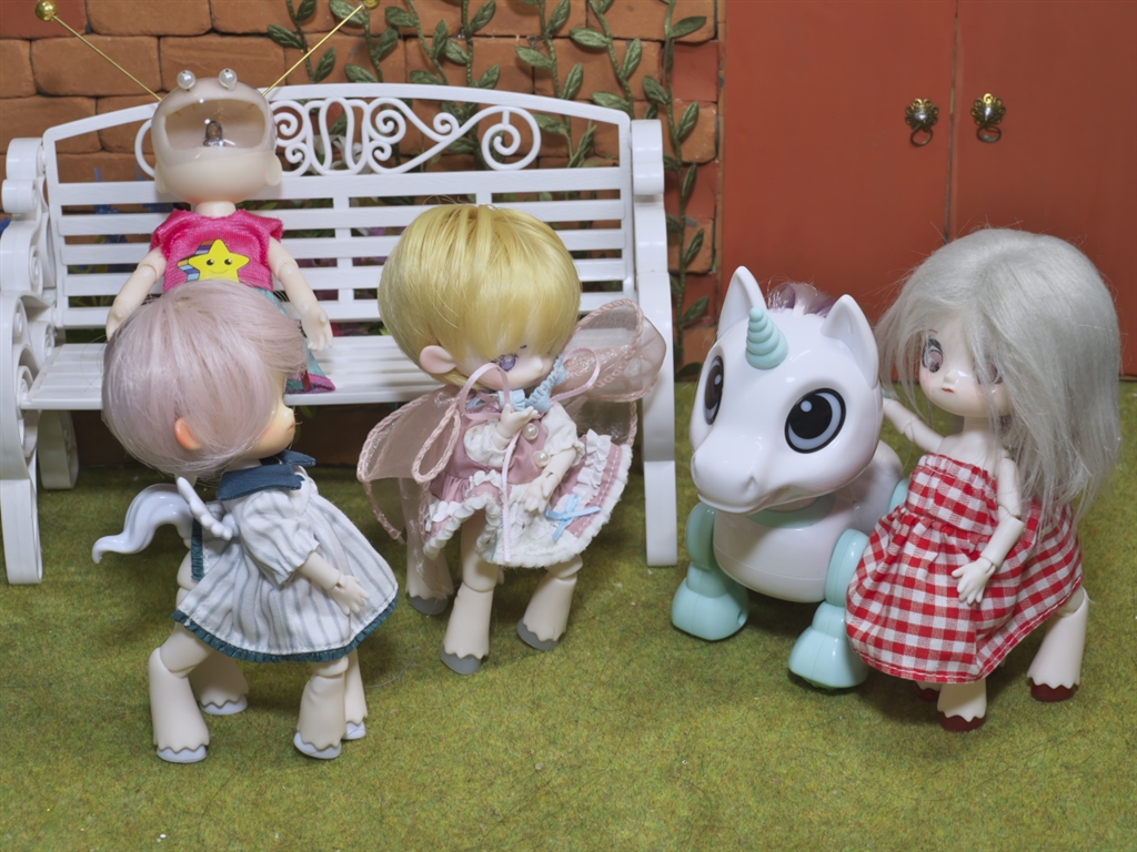 他社の4つ脚のお人形さんと一緒に。