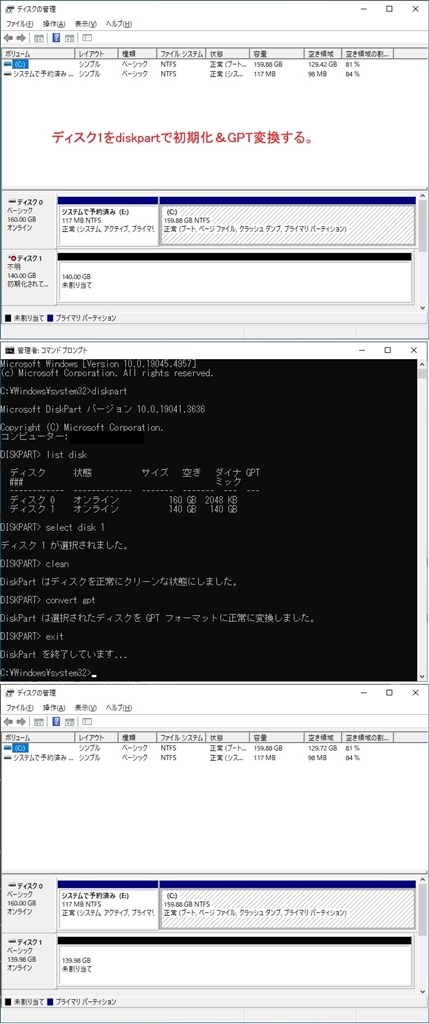 @diskpartで初期化&GPT変換