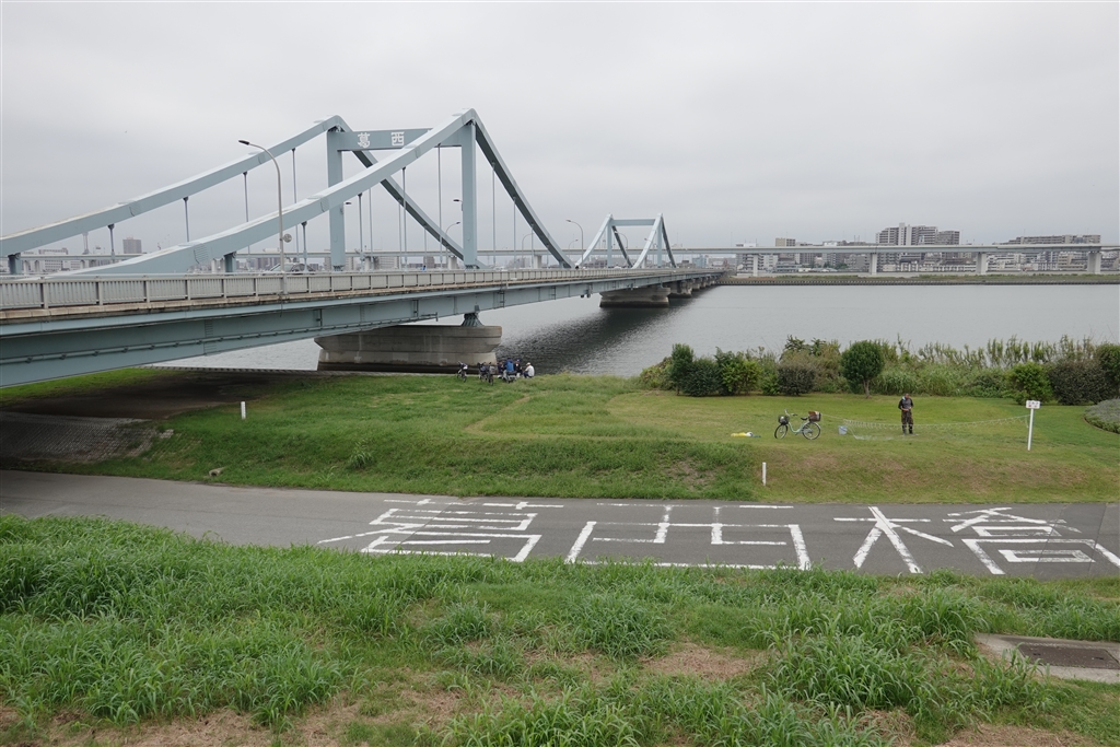 荒川・葛西橋:夜走ってたコースを昼間に。対岸・江戸川区側を左=上流に向かいます