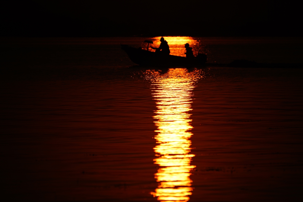 日の出とボート