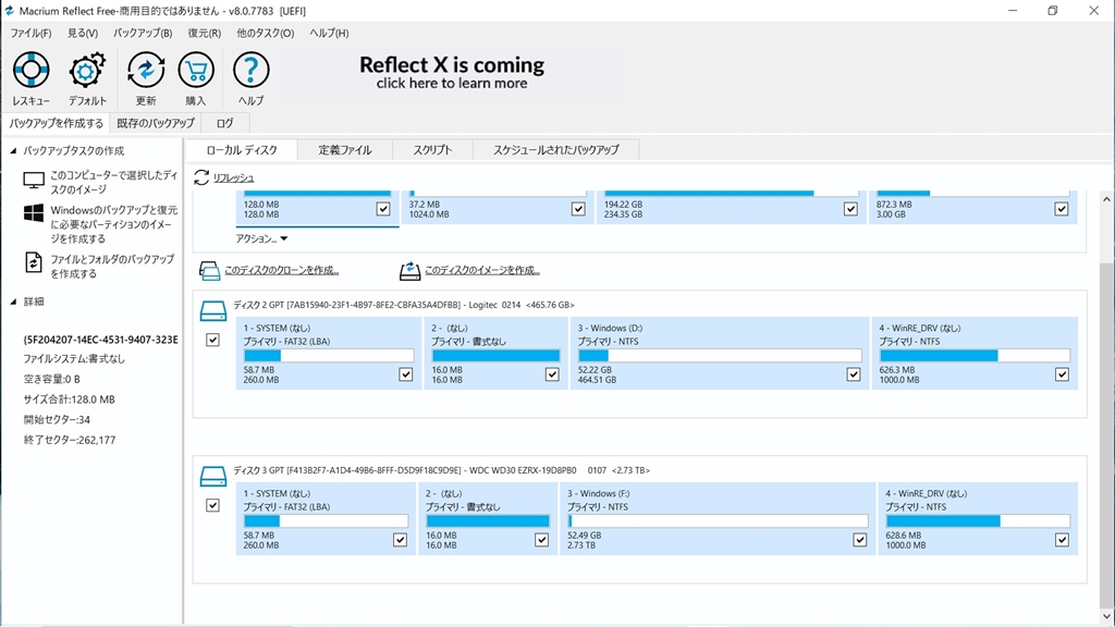 ディスク2と3がクローンしたストレージのパーティション構成です