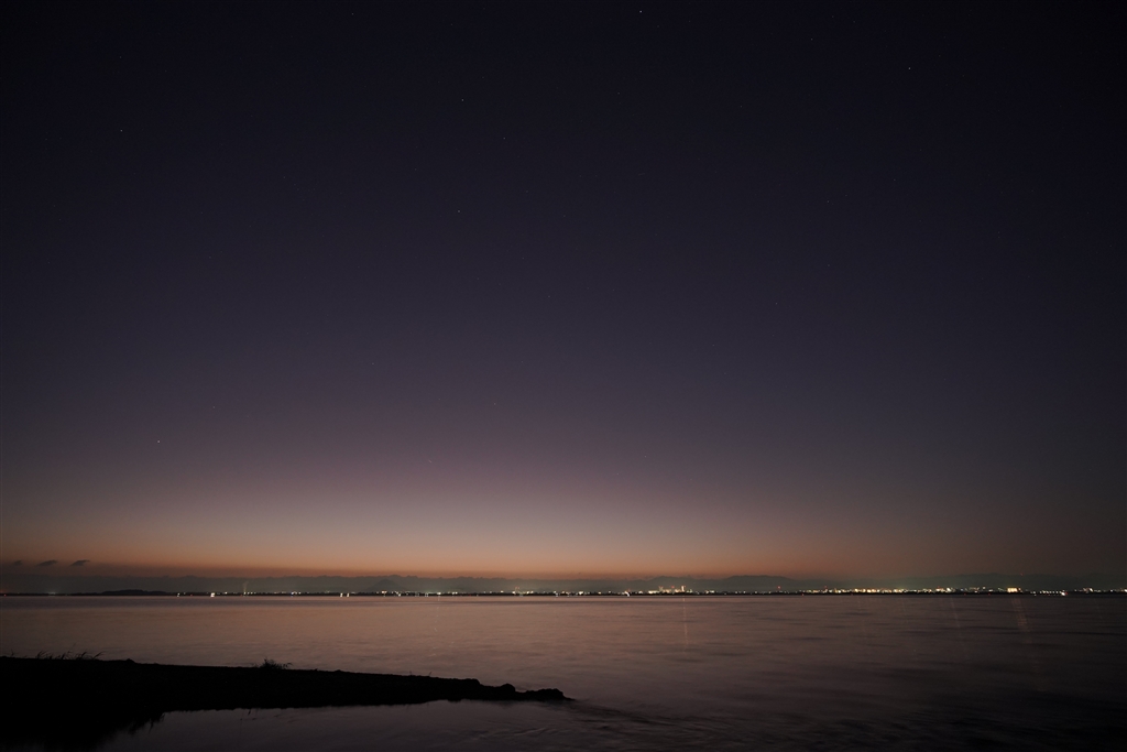 日の出の1時間前 大気が澄んでいると、紫色の世界が広がります