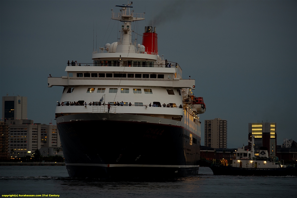 タグボートのアシストで回頭中のにっぽん丸。
