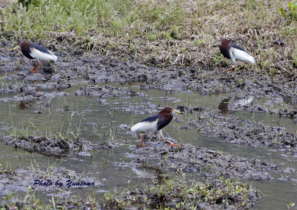 アカガシラサギの成鳥3羽