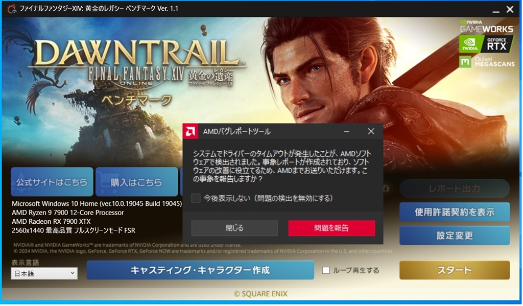 FF14ベンチスタート後DirectXエラー