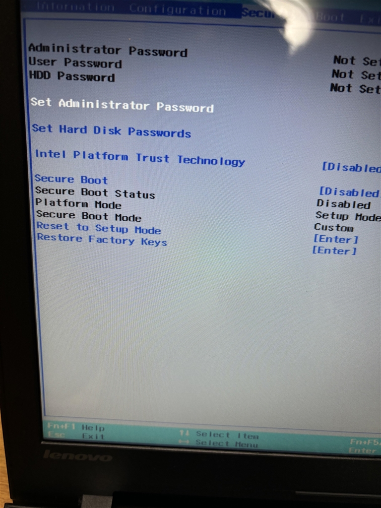 Secure Boot及び Boot Startus を無効にはしていますが。