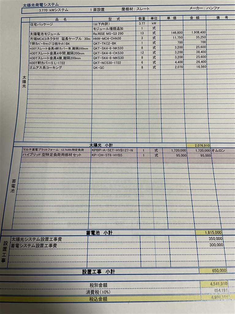 『見積』 太陽光発電 購入相談 刀ならグラナダGGさんのクチコミ掲示板画像2/3