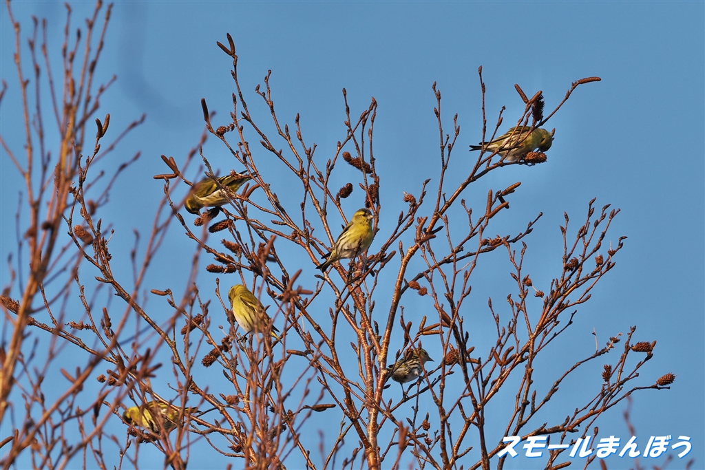 遠くで撮りにくい場所にいたマヒワの群れ