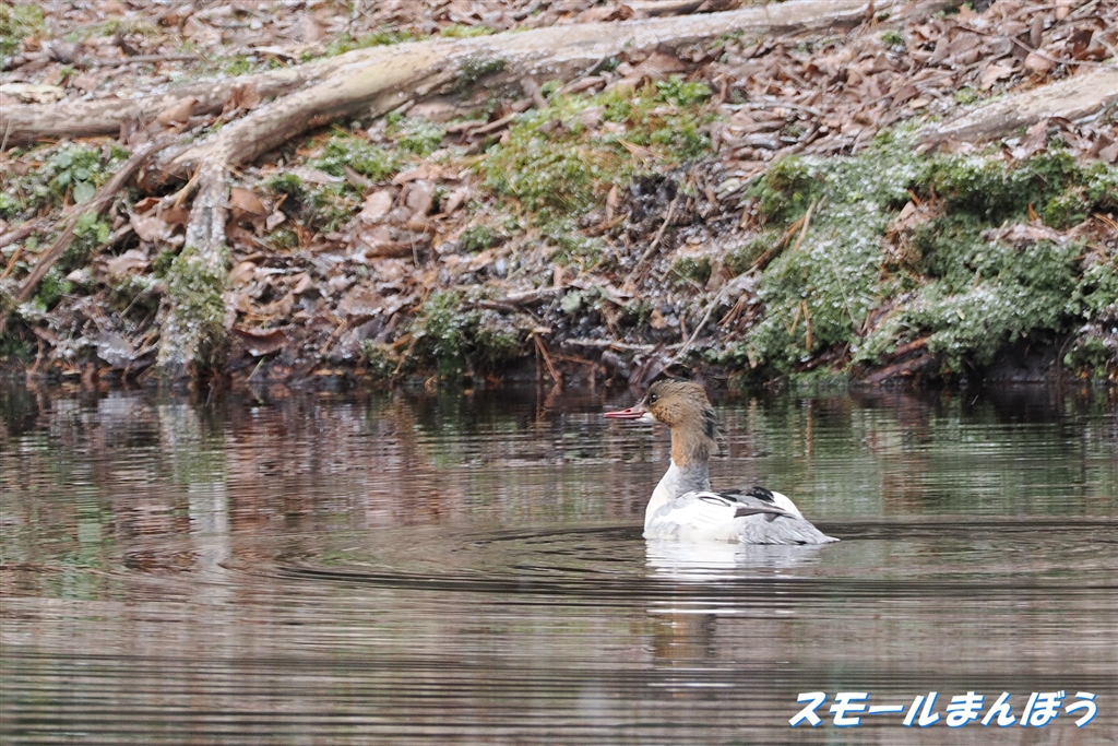 カワアイサが池でプカプカしてた