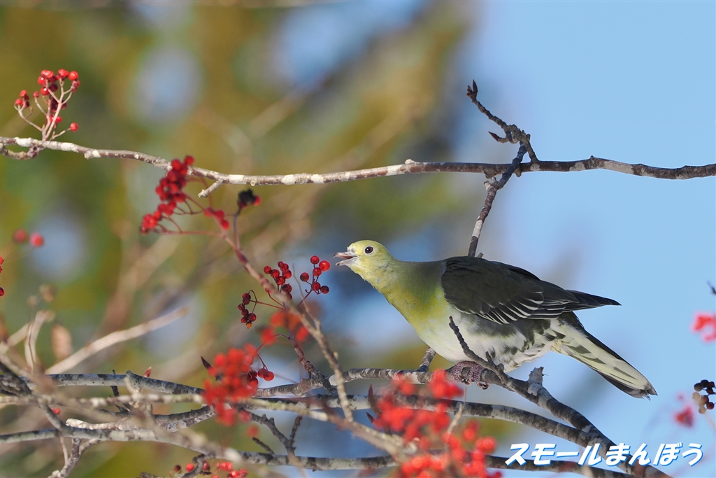 時々ナナカマドの実を啄んでいました