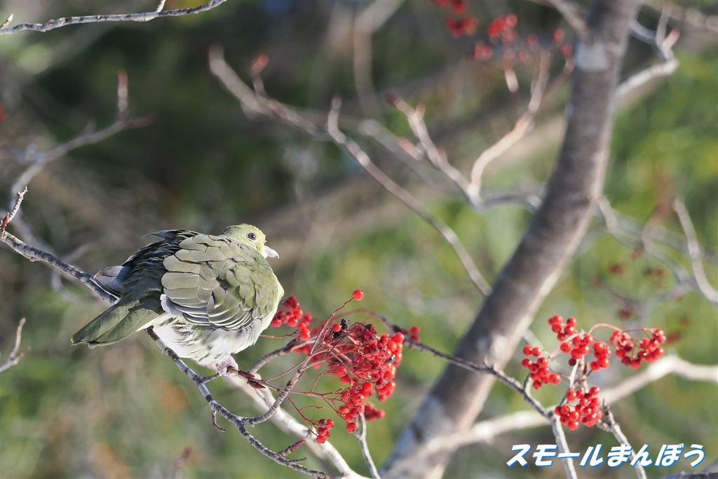 ブワッと羽毛を膨らませたアオバト
