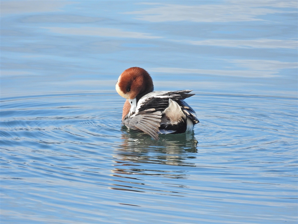 明るい河口はカモたちの休息地 のんびり水に浮かんでました