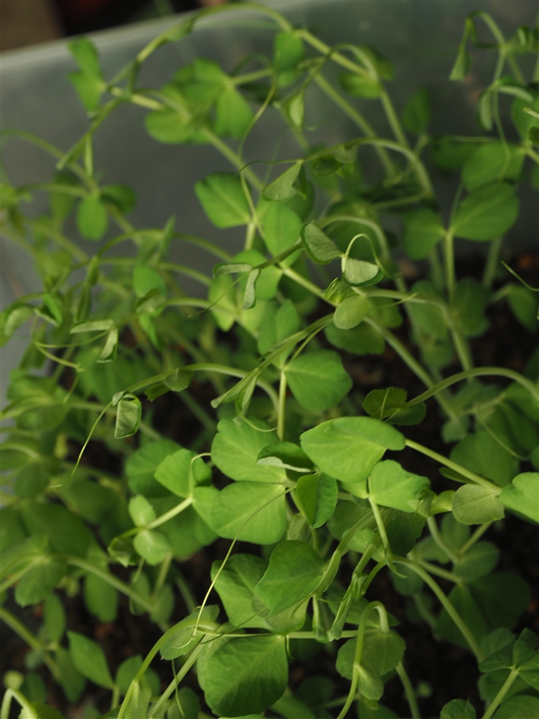 畑のエンドウは霜でやられたのでただいま室内で育苗中