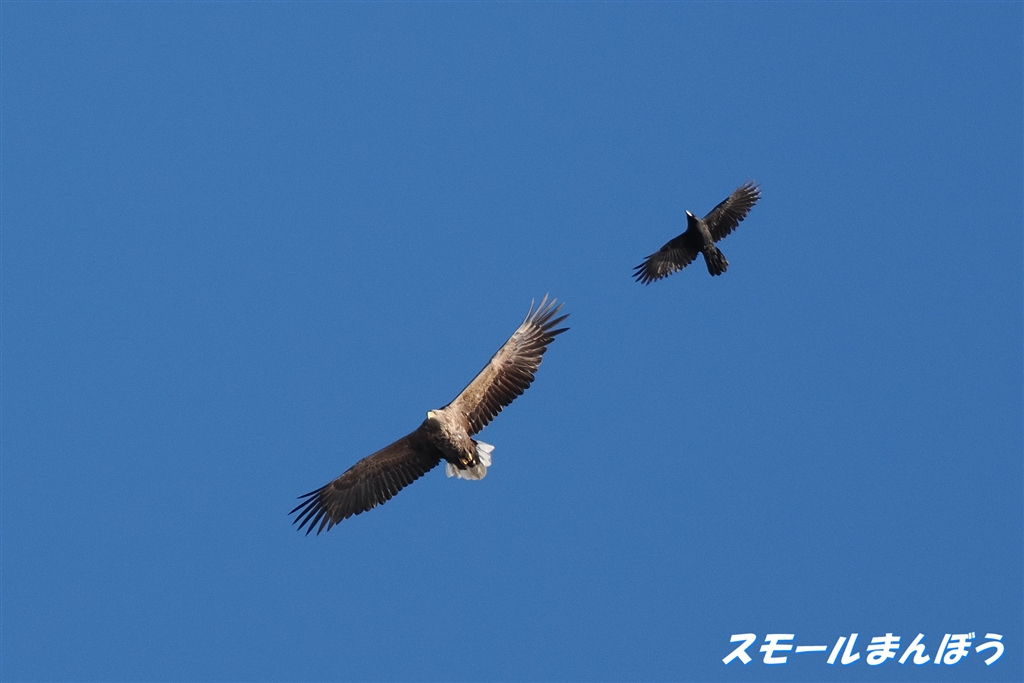 別フィールドの上空でカラスにモビングされていたオジロワシ