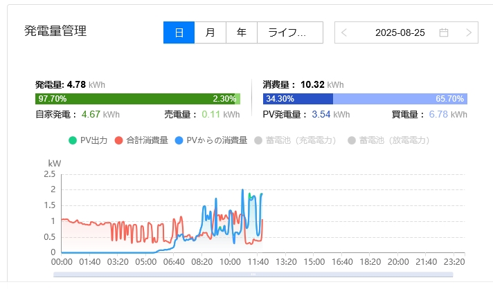 太陽光発電パネル本日の発電量実測で2.0kWいかない