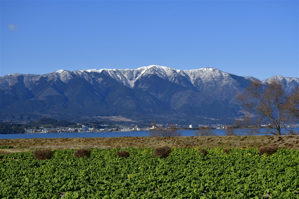 比良山の雪が少ないです。菜の花も見頃は2月?