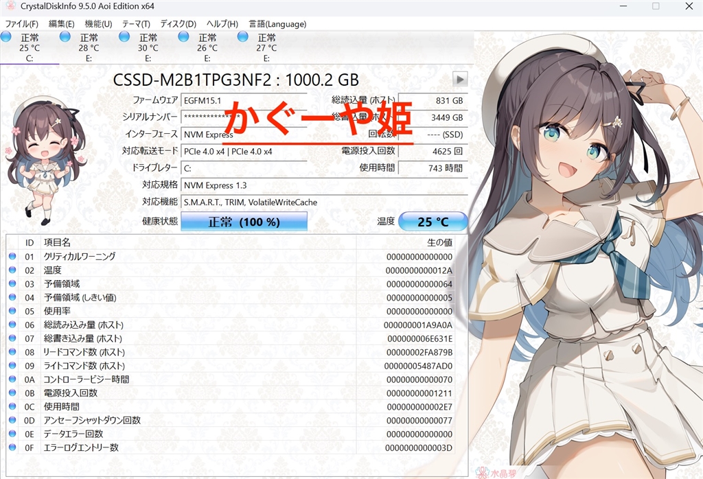 『本日のエラー状況だよ。』 SSDすべて かぐーや姫さんのクチコミ掲示板画像1/1