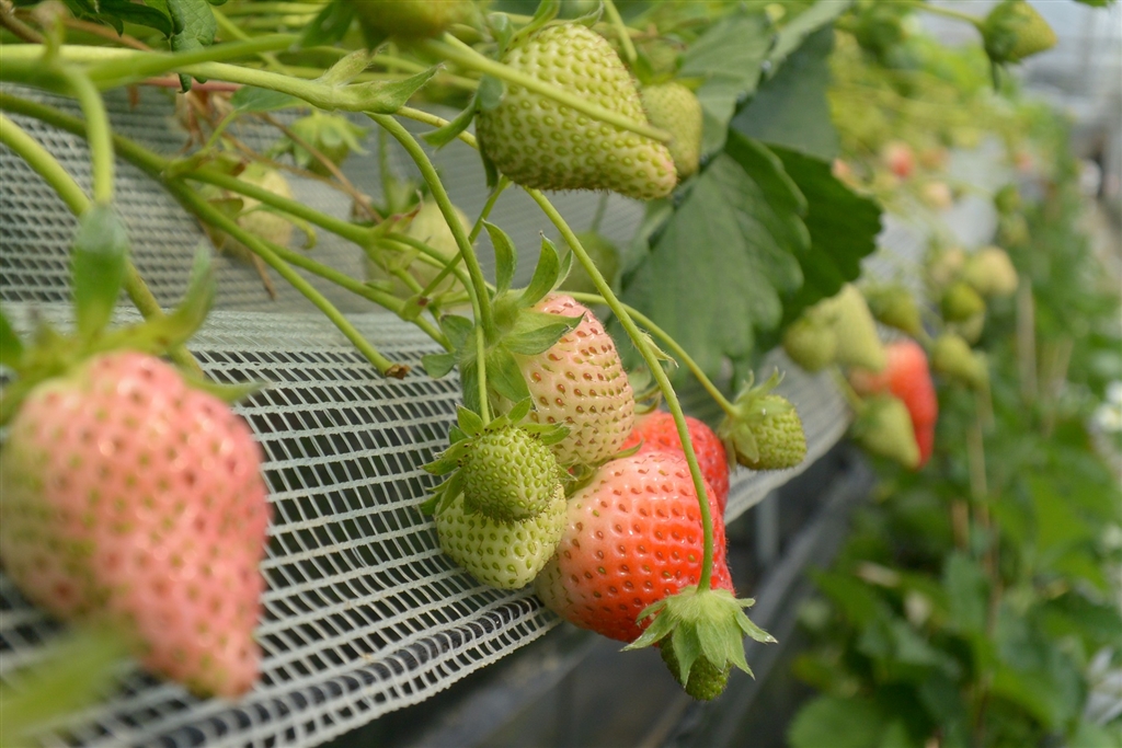 赤い大きな実を選んで摘んで