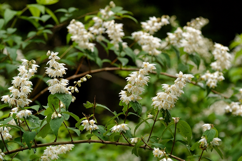 山間ではウツギがあちこちで咲いてます