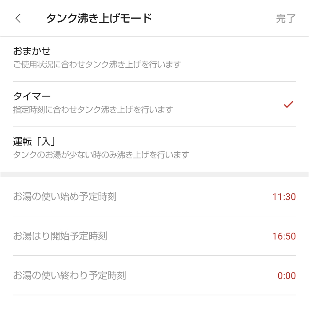 リンナイアプリの湯沸し設定例