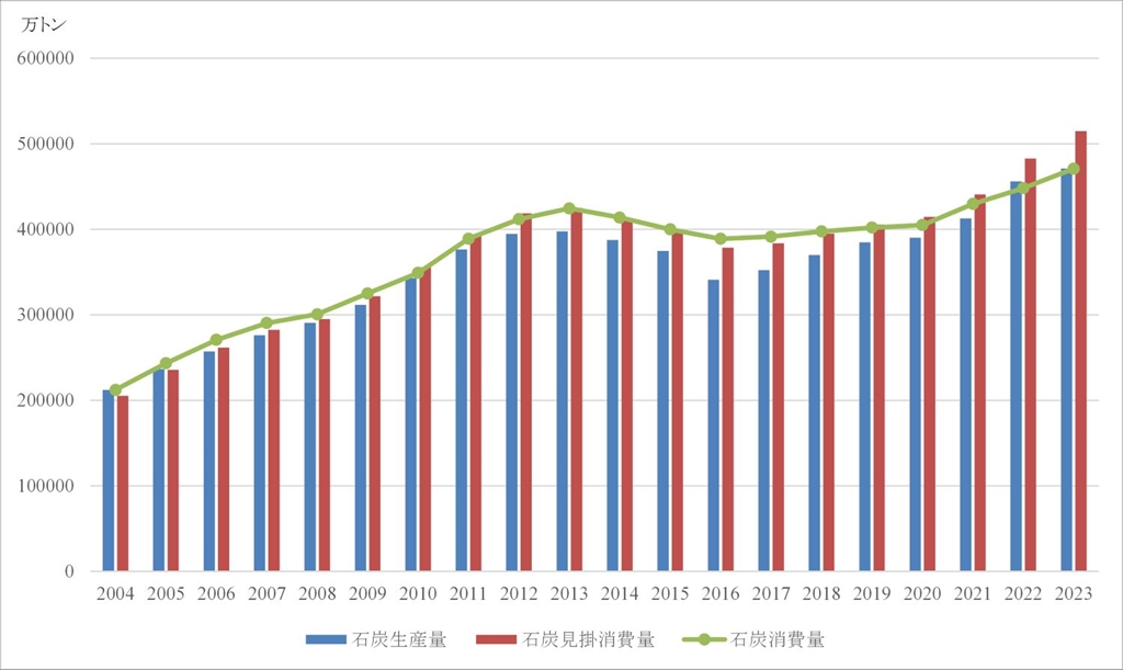中国の石炭生産・消費の推移