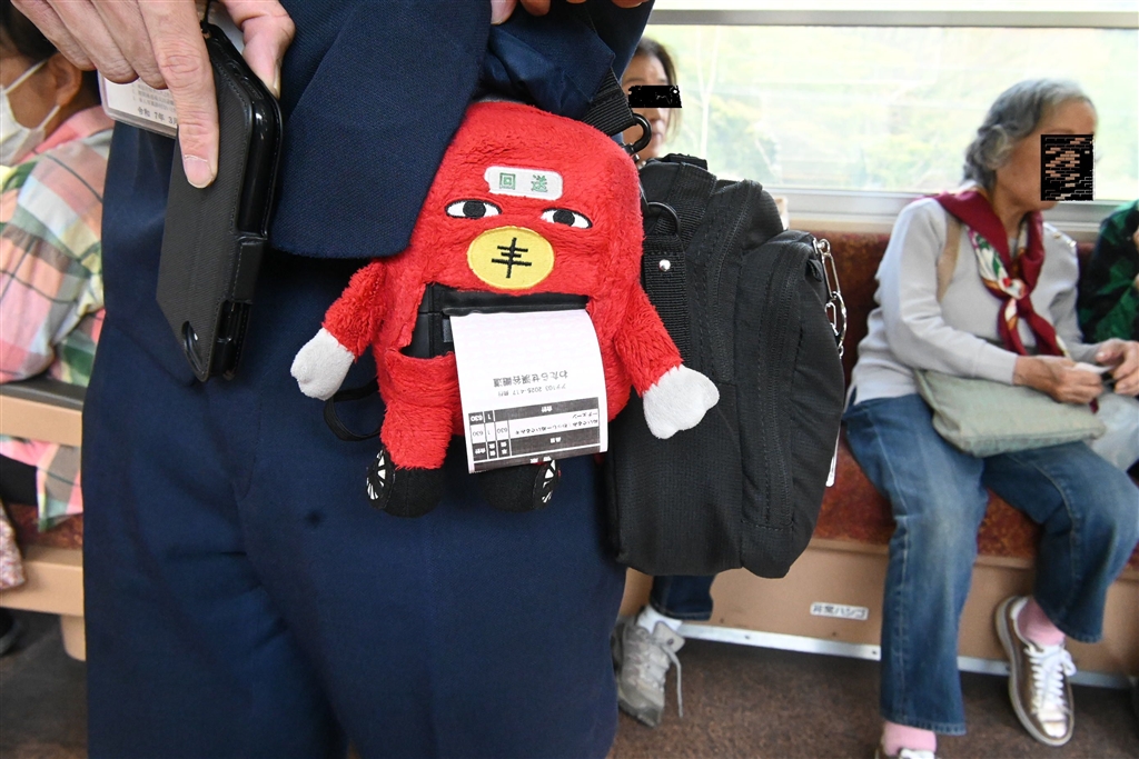 腰につけた「わっしー君」の口から切符が。。