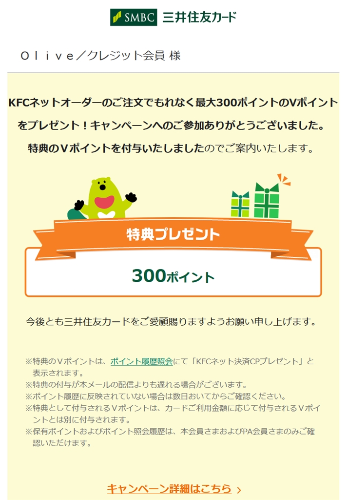 『本日ご褒美の300ポイントが付与されました!!』 クレジットカードすべて マグドリ00さんのクチコミ掲示板画像1/1