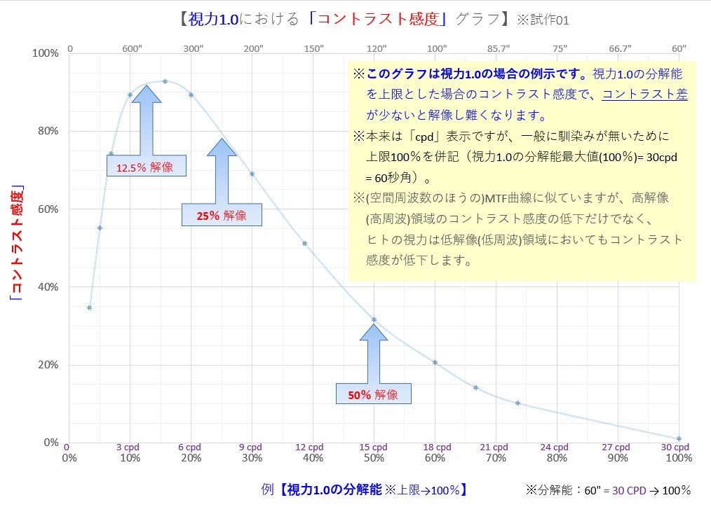 『視力1.0のコントラスト感度 ※ピーク部分は解像【感】に大きく関わる』 双眼鏡・単眼鏡すべて ありがとう、世界さんのクチコミ掲示板画像1/1