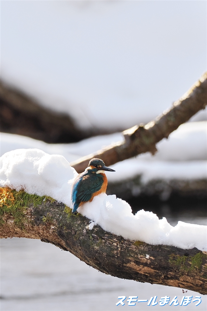 雪の上に降りたカワセミ
