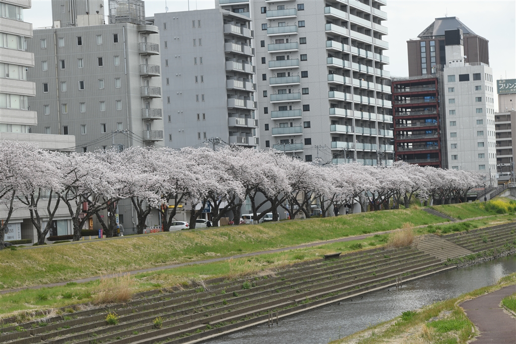 地元桜川沿いのソメイヨシノは鈍色の空同様ドヨ〜ンです