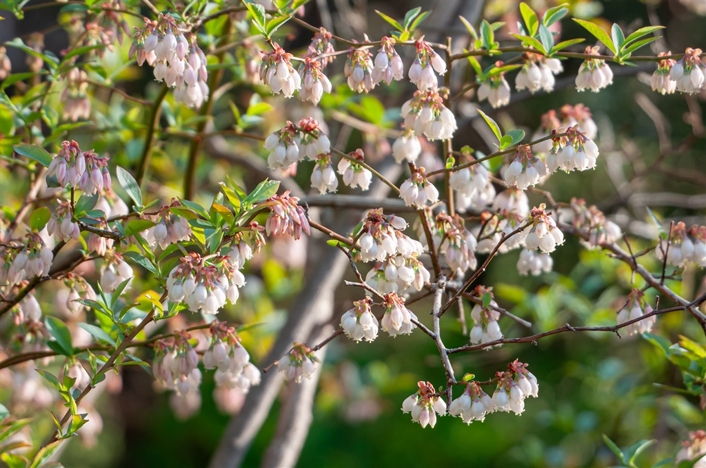庭のブルーベリーに花がつき