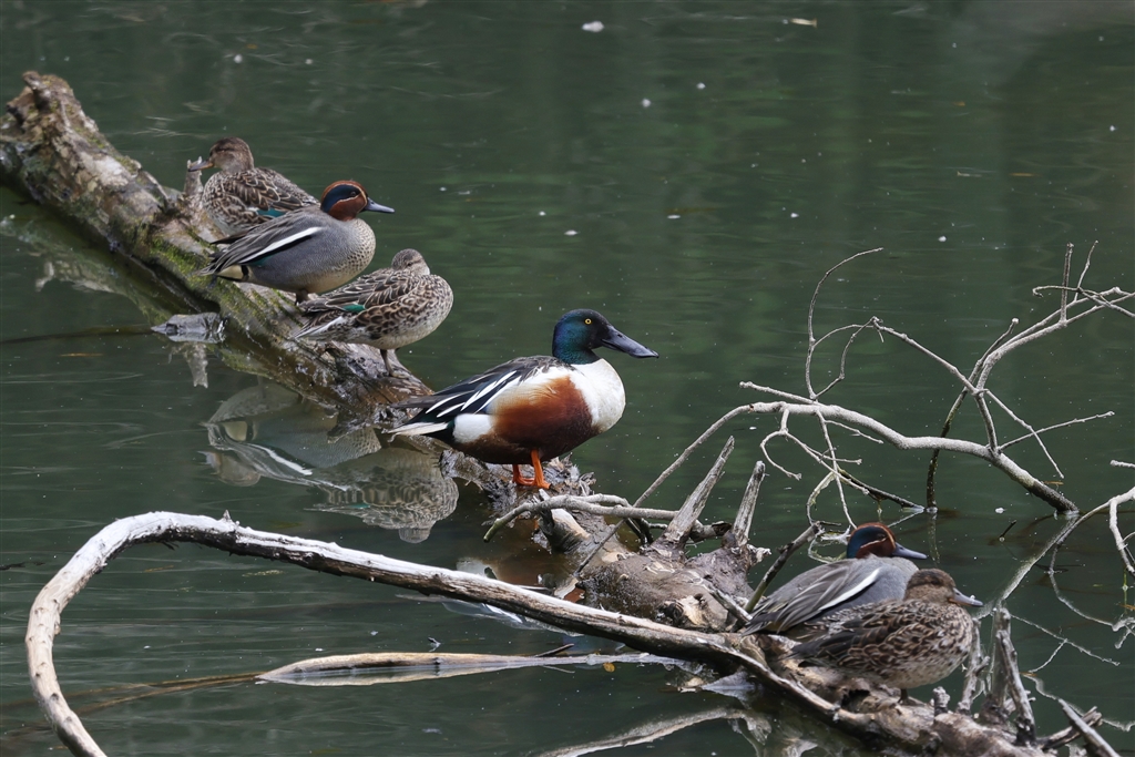 溜池にハシビロガモが…