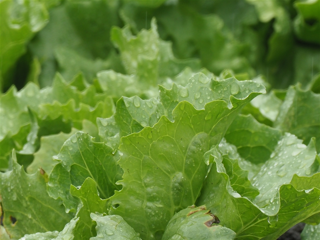 セルトレイから移植のレタス 雨のなかで元気です