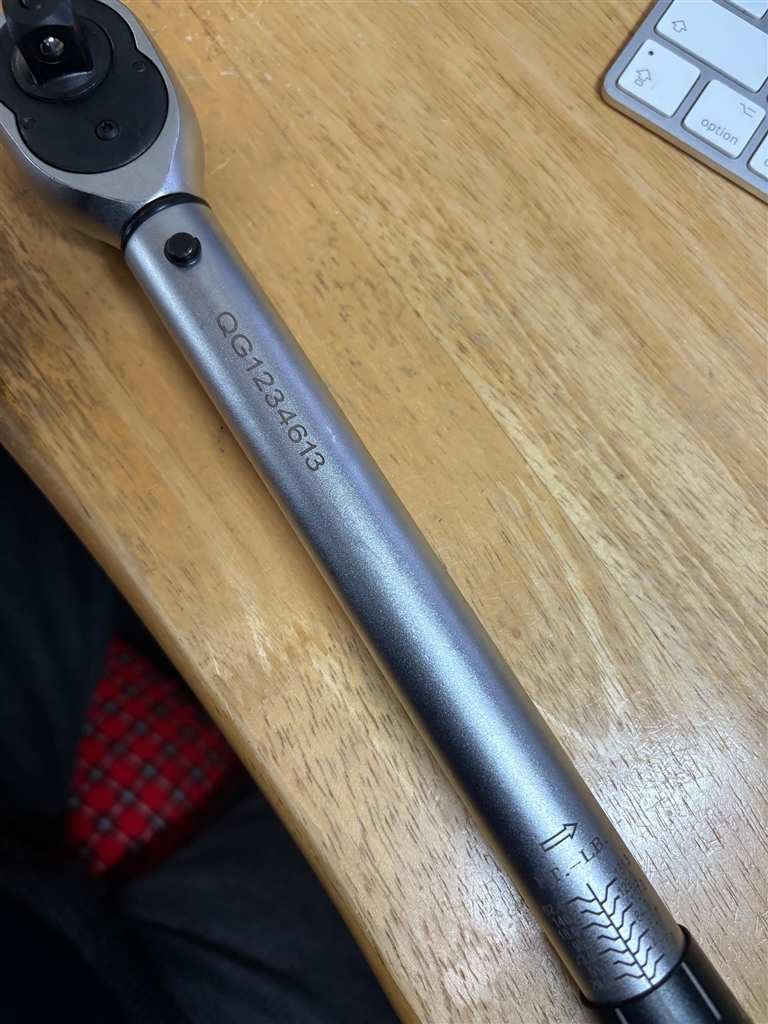 裏側にあるトルク単位Ft-Lbの目盛り側は矢印→