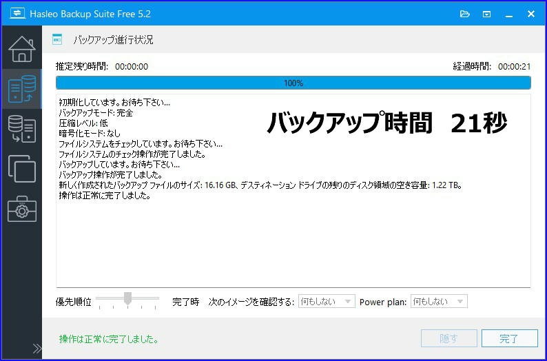 バックアップ時間:21秒
