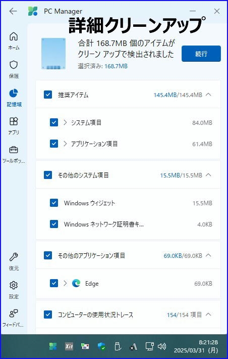 詳細クリーンアップ